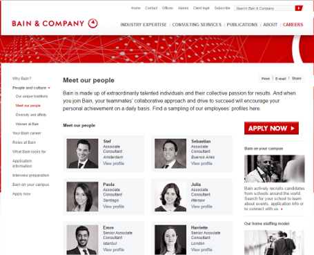 - Average bounce rate for bain.com referrals to JoinBain is 33% – over 160,000 recruits lost?