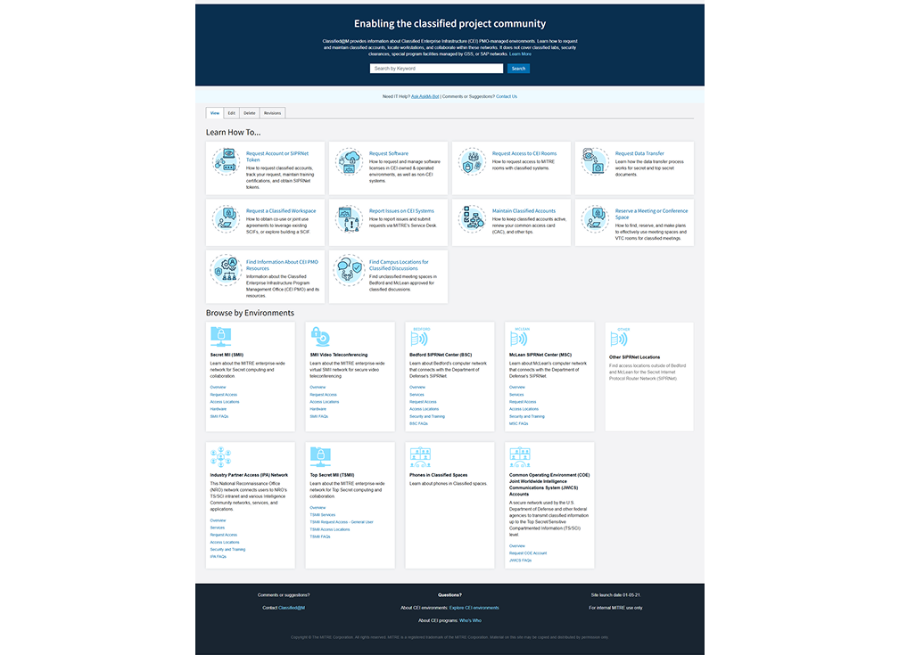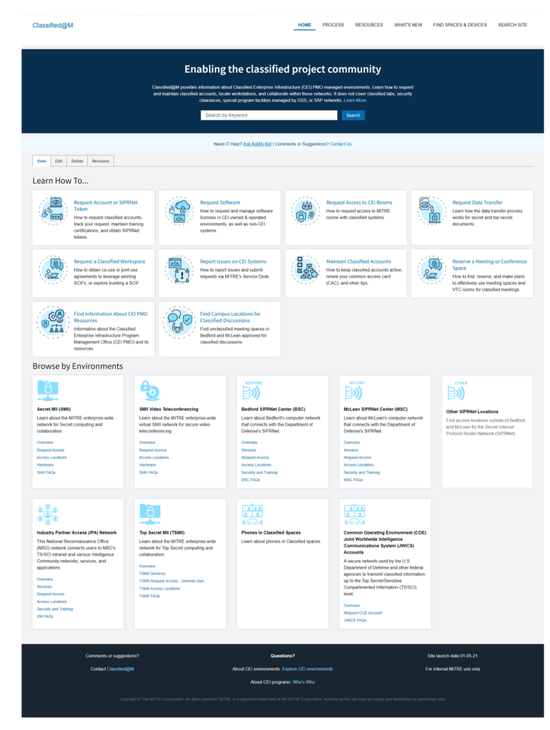 MITRE is an organization that operates federally funded research and development centers, supporting government agencies. As part of an initiative to better support employees with security clearances, the Classified@M product team partnered with User Experience Design to improve the site’s usability and overall effectiveness. This case study showcases how research-driven design led to a more intuitive and purpose-driven user experience.