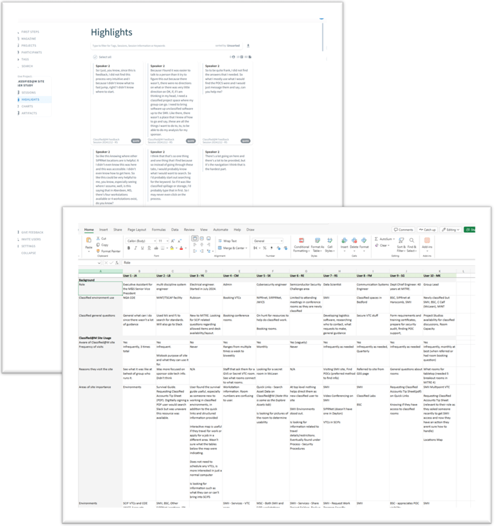 - Additionally used Excel to organize results by user and question during the sessions allowing for quick comparisons