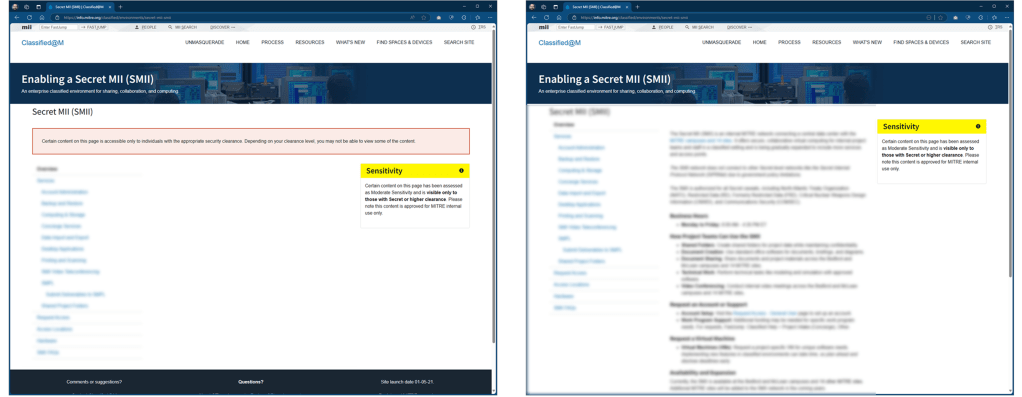 - Product is accessible by all MITRE employees, but some content is restricted based on their clearance level