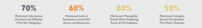 - Find Spaces and Devices focused on finding rooms by type (workstations vs conference) and technology users need to do their jobs (phones, printers, scanners)
