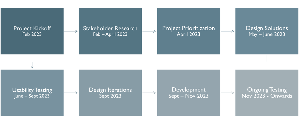 | Design | Wireframe Updates | Synthesize usability findings and make any design updates based on feedback from users or business stakeholders | September 2023 |