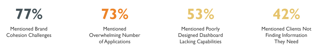 Interviewed 26 stakeholders representing a global cross-functional internal team. Included business segment leads, product teams, IT leads, and client services. Goals were to identify the products available to clients, what their typical user journey was, and was it different based on their role.